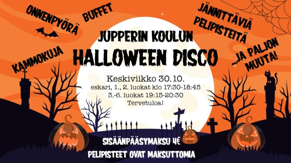 Seuraava Halloween-juhla järjestetään keskiviikkona 30.10.2019 isojen koulun liikuntasalissa ja ruokalassa.